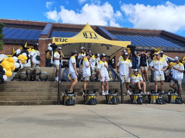 The event featured performances by the TJC drumline and cheer team, drawing a crowd of students, faculty, and alumni. At the center of the ceremony was the iconic Homecoming Drum, a long-standing tradition where students take turns beating the drum continuously from Monday through Saturday to symbolize unity and school spirit.